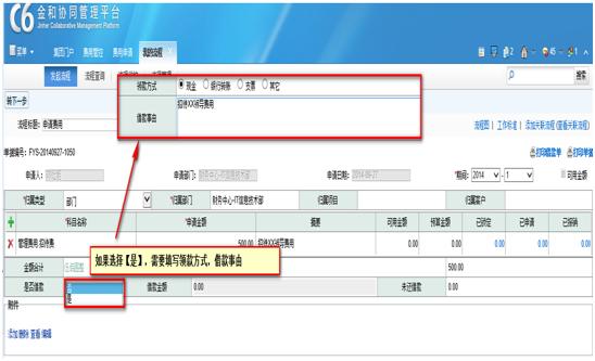 3.录入费用报销的时候,根据情况,如果有特殊情况,请在领款说明栏位上填写说明