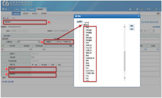 7.【选择申请单】此功能前提是要有费用借支流程,才能选择单据,并且会显示【原申请金额】栏位