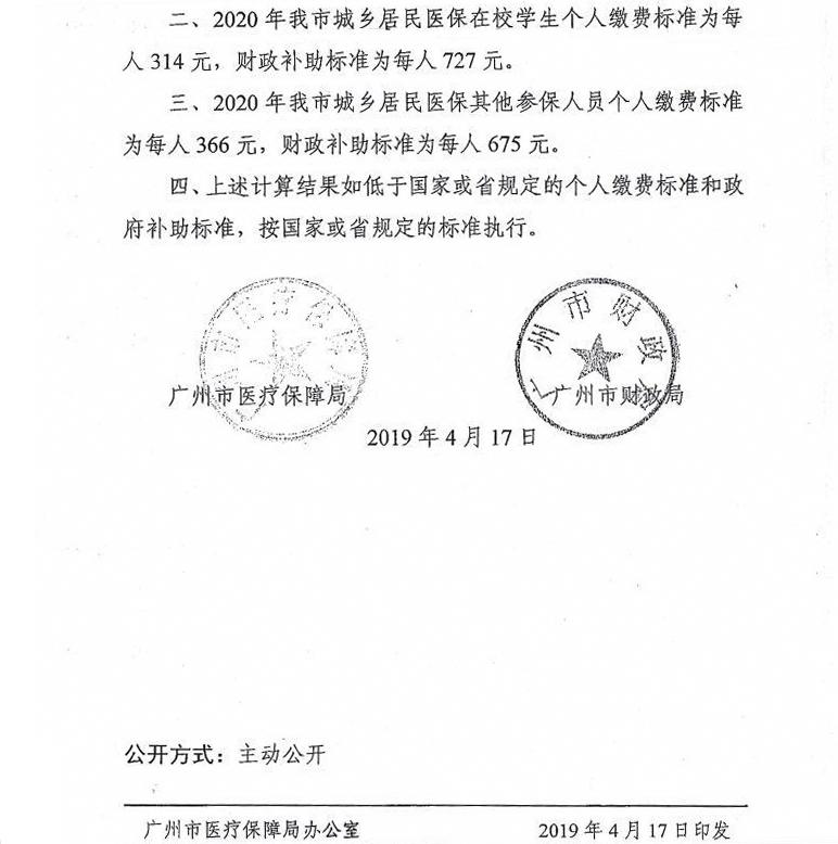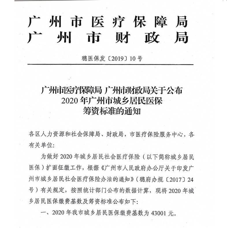 2020年广州市城乡居民医保筹资标准的通知