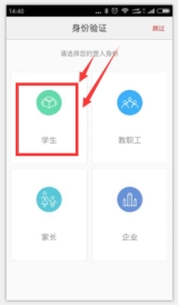 2)输入昵称、手机号码、密码等点击提交注册,然后进入验证页面,选择“学生”