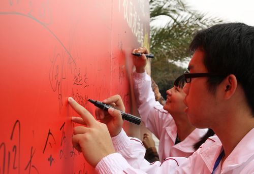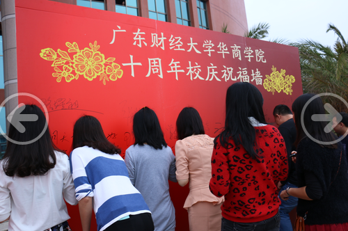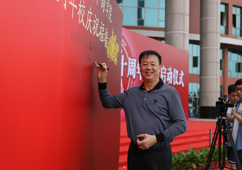 启动仪式的最后,廖榕就董事长在校庆祝福墙上写下“愿华商十周年校庆圆满成功!”的贺语,陈玉川院长也留下了“华商好”的题词,学院领导与在场师生们也纷纷在祝福墙上留下了自己的祝福。