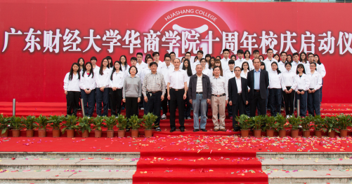 2015年3月30日上午10点,广东财经大学华商学院十周年校庆启动仪式在我院图书馆广场顺利举行。廖榕就董事长、陈玉川院长、苏宁书记等学院领导莅临仪式现场,与近500名学生志愿者、教职工代表共同见证这一时刻。
