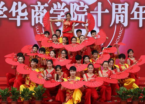 仪式第一项,廖榕就董事长宣布:广东财经大学华商学院十周年校庆筹备工作正式启动。随后廖董事长与陈院长一同上台,推动启动杆,顿时礼炮满天,与全场师生共同庆祝十周年校庆筹备工作正式开始。伴随着热烈的气氛,由学生志愿者们表演的扇子舞《华商红》惊艳登场,他们用气势磅礴的舞姿诠释着华商的风采,奏响华商恢弘大气的发展乐章。
