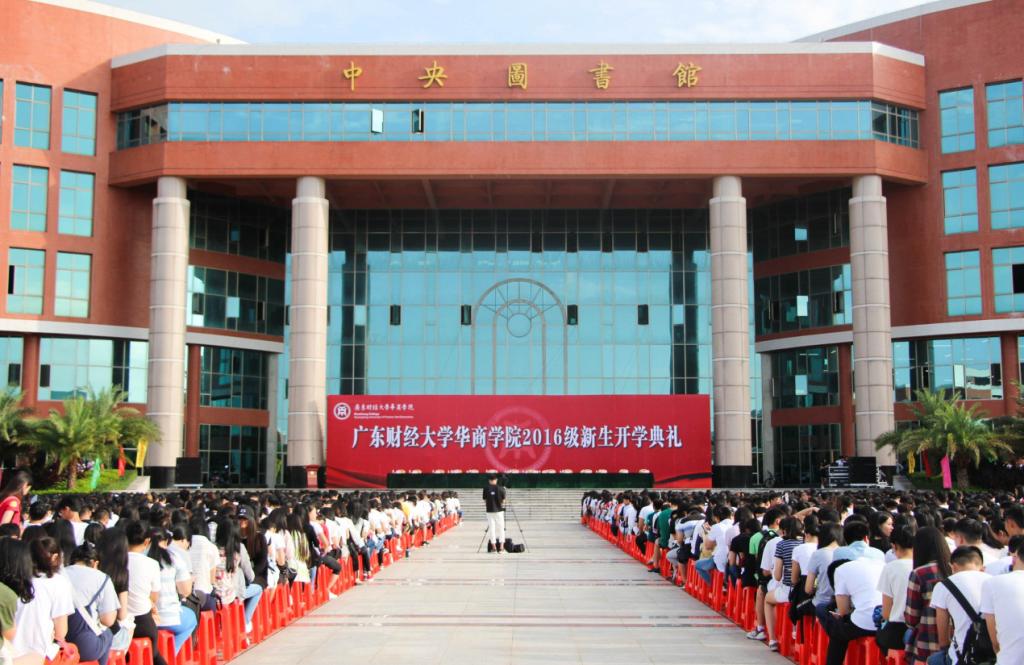 9月12日上午,广东财经大学华商学院彩旗飞扬。迎着朝阳,我院2016级新生开学典礼在中央图书馆广场隆重举行。典礼由王锦秀副院长主持。出席典礼的领导嘉宾有华商教育集团董事长廖榕就,广东财经大学副校长王廷惠,华商学院陈玉川院长,党委书记苏宁,支戈壁副院长、郭银华副院长、马玉珍副院长、龙少锋副院长、王列耀副院长、王锦秀副院长、杨丽娟副院长、张捷副院长、以及各二级学院,系部处室负责人。