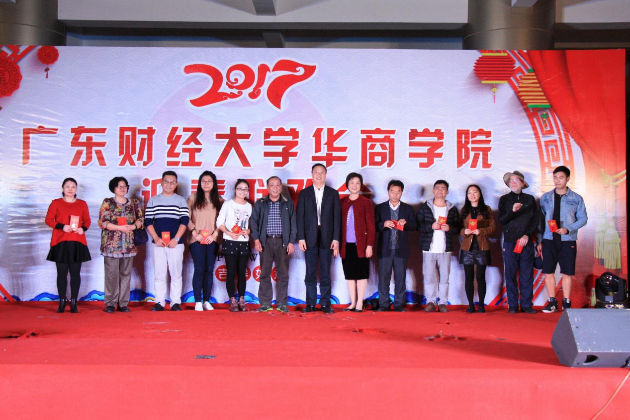 元月十日晚7时,我院于启智楼1楼广场举行2017年迎春联欢会。广东省政协常委、华商学院廖榕就董事长,华商教育集团陈练瑛董事、陈玉川院长、苏宁书记、执行董事廖智威先生、华商教育集团廖伊琳董事,学院支戈壁、郭银华、马玉珍、龙少锋、王列耀、王锦秀、杨丽娟副院长及华商教育集团陈素丹副总监出席了联欢会,与六百多名教职工欢聚一堂,喜迎新春、同享喜庆、共话发展。本次联欢会由支戈壁副院长主持。