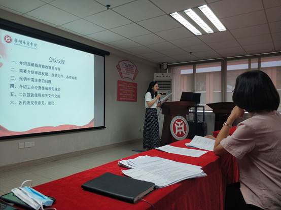 会议就报销指南修改增补内容,审批权限、报销文件、各类标准和下一步财务制度及报销流程等方面的优化思路进行了介绍。由会计介绍了报销中需注意的问题、粘贴单正确处理方法、差旅费报销单正确填写方法,着重交流二级经费拨款使用相关文件解读。回答参会代表们反馈报销和采购过程中难点,认真听取了各部门的建议,将会后研究完善和改进。