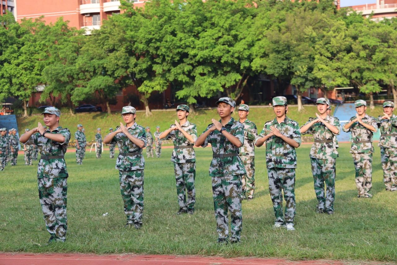 表演方阵的同学们先后带来了警棍术、擒敌拳、综合格斗、匕首操、手语操等精彩节目,动作孔武有力、干脆利落;口号振奋人心、昂扬洪亮,充分展现出华商青年不畏烈日、阳光向上、积极进取的精神面貌,同时也展示了14天军训的丰硕成果,用坚毅勇敢描绘未来蓝图。