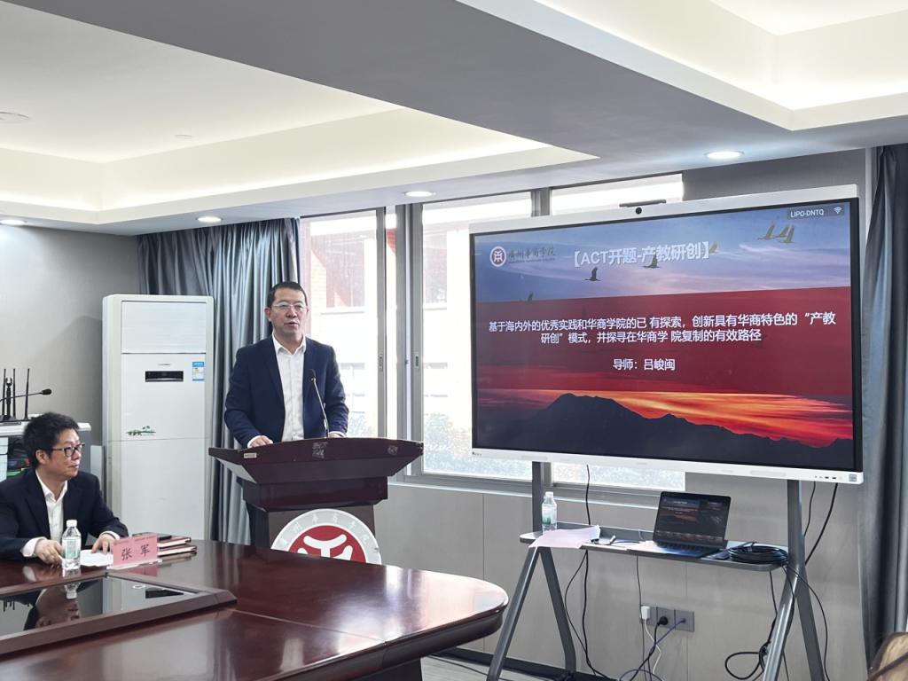 副校长吕峻闽导师主导的产教研创课题,基于海内外的优秀实践经验和华商学院的已有探索,致力于创新具有华商特色的“产教研创”模式,并探寻在华商学院复制推广的有效路径。在当今经济社会高度融合发展的时代,产教研创一体化已成为高校提升教育质量、服务社会经济发展的重要趋势。吕峻闽导师介绍了国内外高校在产教研创方面的成功案例,结合广州华商学院的实际情况,指出学校应进一步加强与企业的深度合作,建立产学研合作基地,开展联合科研项目、实习实训基地建设等合作形式,实现学校教育资源与企业产业资源的无缝对接,学校应完善创新创业教育体系,提供创业孵化平台、创业指导与资金支持等服务,激发学生的创新创业热情,培育具有创新精神和创业能力的高素质人才,形成具有华商特色的“产教研创”良性循环生态链。