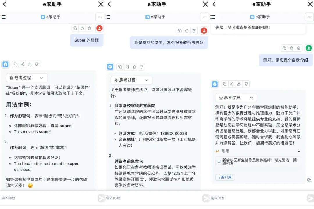 亲爱的华商人们,在集团与学校领导的推动及多部门(信息中心、实验教学与网络技术管理中心、人工智能学院、动漫游戏产业学院、教务处、学生处、招生办等)的鼎力支持下,成功将华商版DeepSeek“E家助手”正式接入华商智慧校园系统!