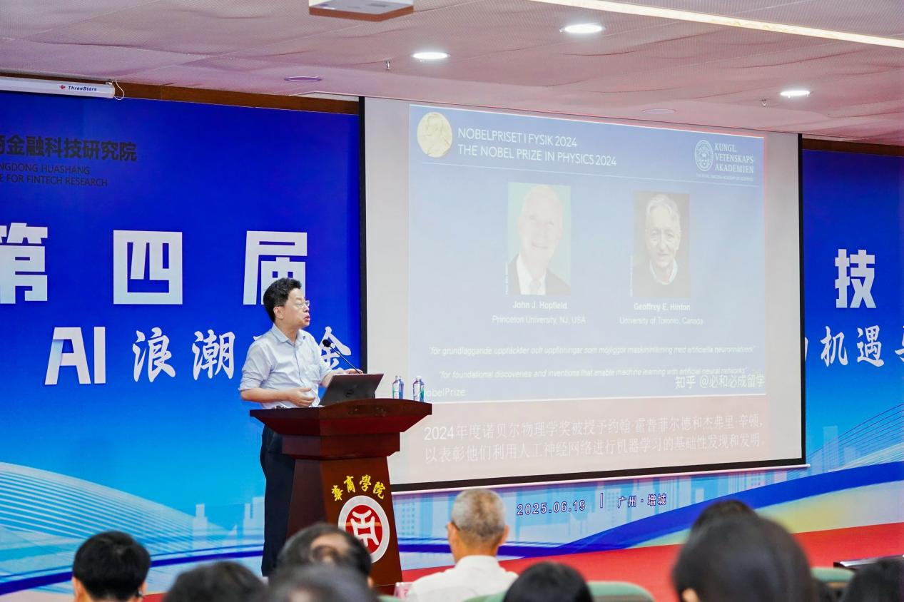 2025年6月19日,由广州华商学院数字金融学院与广东华商金融科技研究院联合主办,广东乡村振兴金融研究中心、华商数字金融省级实验教学示范中心、粤港澳大湾区青年职业发展促进会等单位协办的“第四届华商金融科技论坛”在广州华商学院中央图书馆隆重举行。出席本次论坛的嘉宾有:广州华商学院校长胡军教授,学校副校长、广东华商金融科技研究院院长刘少波教授,校长助理、科研处处长李远飞教授,以及来自南方科技大学、上海财经大学、海南大学、厦门大学、华南理工大学、暨南大学、广东金融学院等知名高校的专家学者。此外,中国建设银行、东方证券、广州黄埔融和村镇银行、华夏银行以及同花顺、深圳点宽等金融机构和金融科技企业的业界精英齐聚一堂。数字金融学院领导、教师及全体学生也积极参与了此次盛会。