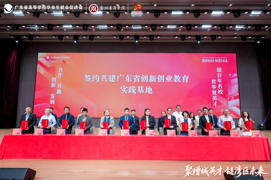 在高就会代表与暨南大学、南方医科大学、华南农业大学等11所兄弟院校共同见证下,广州华商学院与增城区创新创业协会、多所成员院校及企业代表共同签署“广东省创新创业教育实践基地”共建协议。该基地将作为联盟实体化运作的关键平台,为学生提供对接产业需求的实战训练与项目孵化环境。